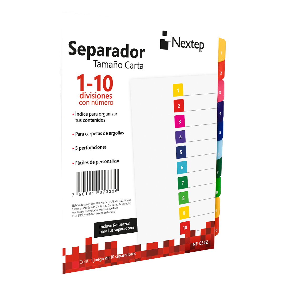 ESPECIFICACIONES: NEXTEP, 10 DIVISIONES CON NÚMERO