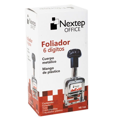 • Otros: "Foliador, tinta negra, 2 almohadillas y 1 ajustador de plástico 6 dígitos"